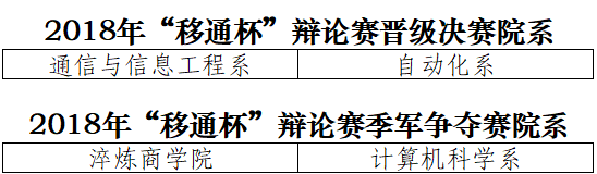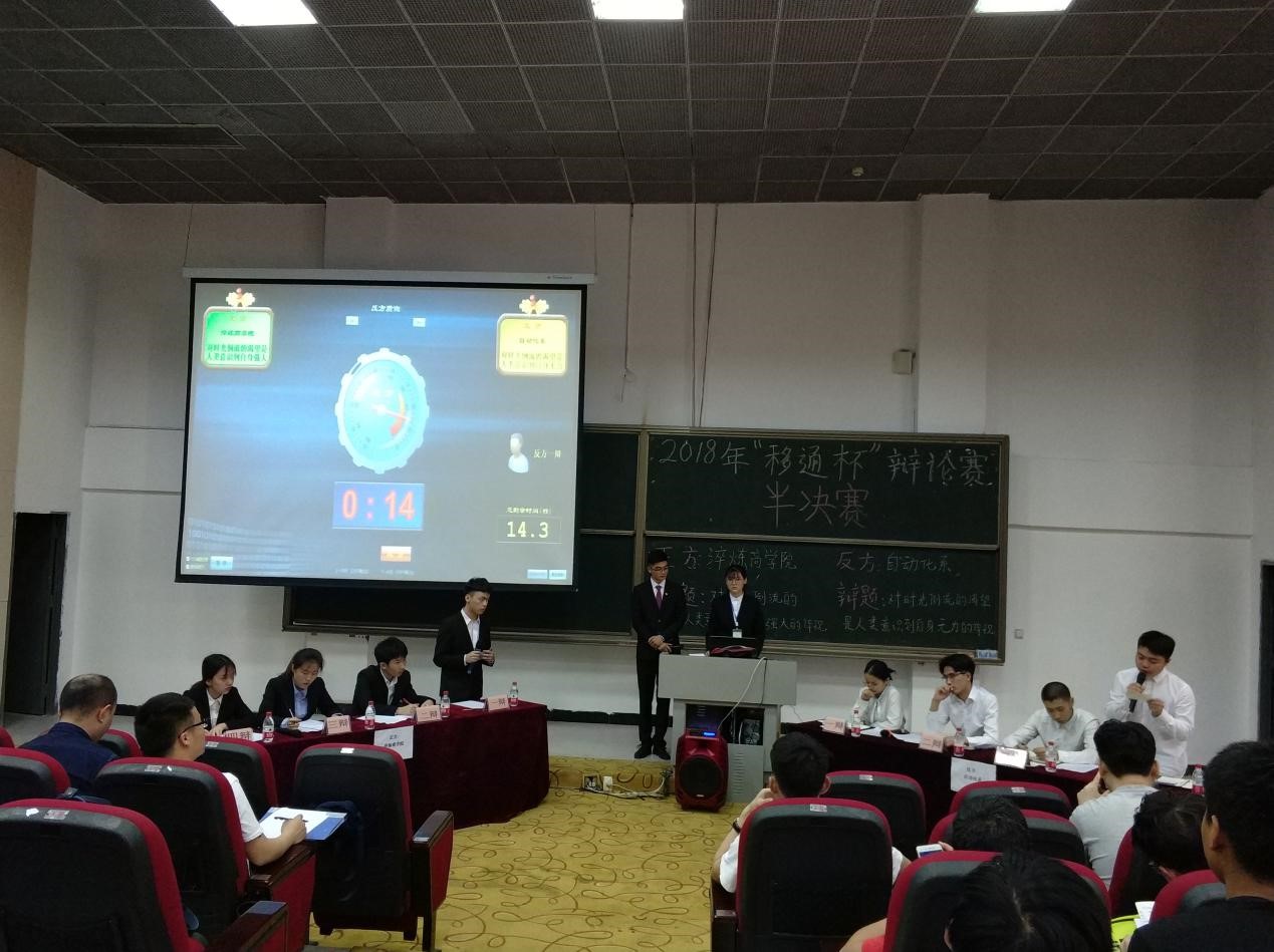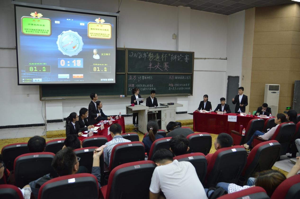 群雄舌战展雄风,争锋相对辩天下!4月9日,2018年“移通杯”辩论赛半决赛成功举办。顺利晋级的通信与信息工程系、计算机科学系、自动化系、淬炼商学院四个院系在第三教学楼展开了新一轮的角逐。现在让我们一起回顾半决赛的精彩瞬间,且看赛场风云变幻,共同领略辩论魅力。