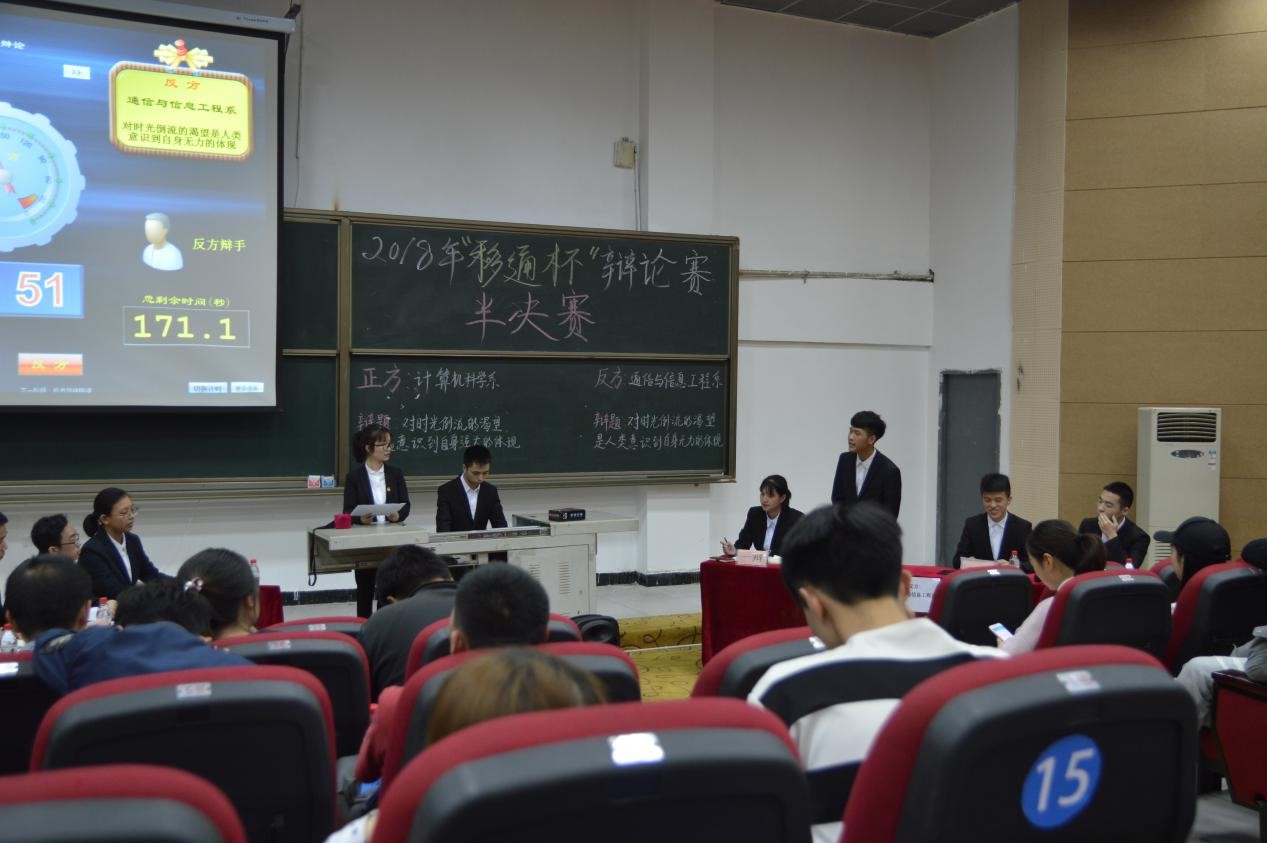 “最长的莫过于时间,因为它永远无穷尽,最短的也不莫过于时间,因为我们所有的计划都来不及完成。”通信与信息工程系与计算机科学技术系围绕“对时光倒流的渴望是人类意识到自身强大的体现还是自身无力的体现”展开了辩论。