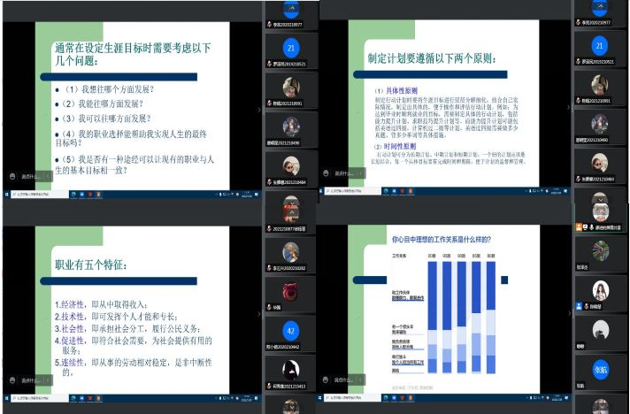 活动伊始,廖进老师询问大家有没有在大一或大二时写过职业生涯规划书规划自己的未来。并抛出一系列问题,你是否从事你的理想工作?你追求理想工作的最大困难是什么?不同年龄段人群会因为什么对工作投入更多的热情?廖进老师认为我们应该根据个人期待和现实条件去理性选择未来工作,可以借助职业生涯规划帮助自己确定职业发展目标。通过分析,认识自己,了解自己,找出自己的特点和优势,正确设定自己的职业发展目标,并制定行动计划,使自己的才能充分发挥,以实现职业发展目标。