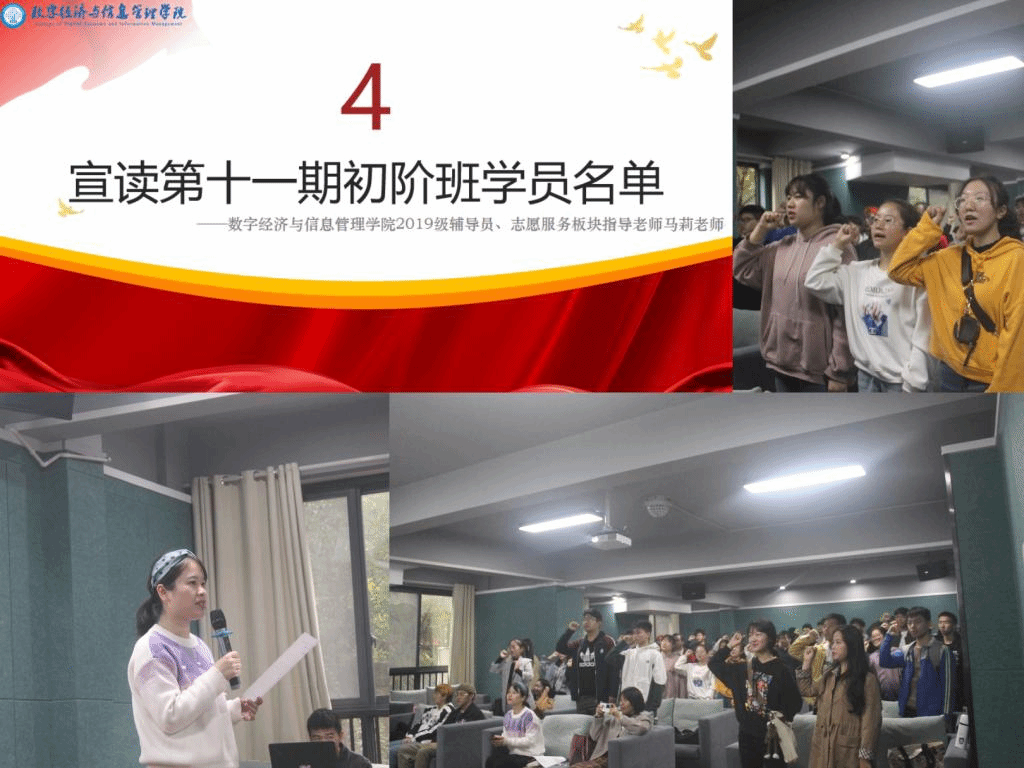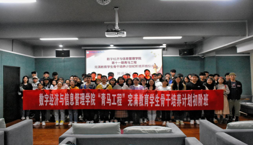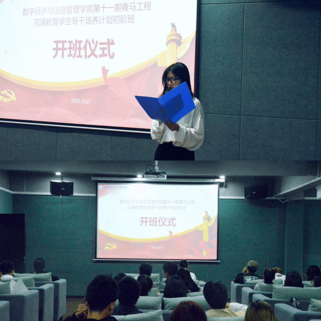 随着“青马工程”初阶班的选拔考试落下帷幕,学员名单也尘埃落定。为加强“青马工程”初阶班队伍建设及学员归属感,数字经济与信息管理学院于10月27日12:15在爱莲书院多功能影音室开展了第十一期“青马工程”完满教育学生骨干培养计划初阶班开班仪式。