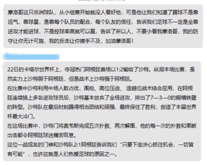 加时赛制造悬念、摩洛哥爆冷出圈,“八强出经典”“大赛靠防守”。世界杯的每一帧画面与每一场变动都牵动着移通球迷们的心,这既是世界杯的精彩演绎,也展现了移通学院与智能工程学院体育文化传播的风采。