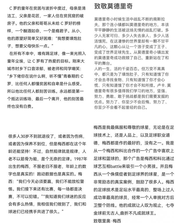 本次世界杯是梅西的“最后一舞”,和C罗一样,他们陪伴世界杯走过了好几个四年,也陪伴了无数球迷的青春。尽管他们早已不是踢球的黄金年龄,但热爱、梦想与坚定的意志力仍支撑他们在球场上奔跑。C罗的招牌口号“siu”、梅西的精湛球技,“最后的桑巴舞者”内马尔、总是给人惊喜的姆巴佩......球迷们的热爱与支持,不只足球,更因信仰。