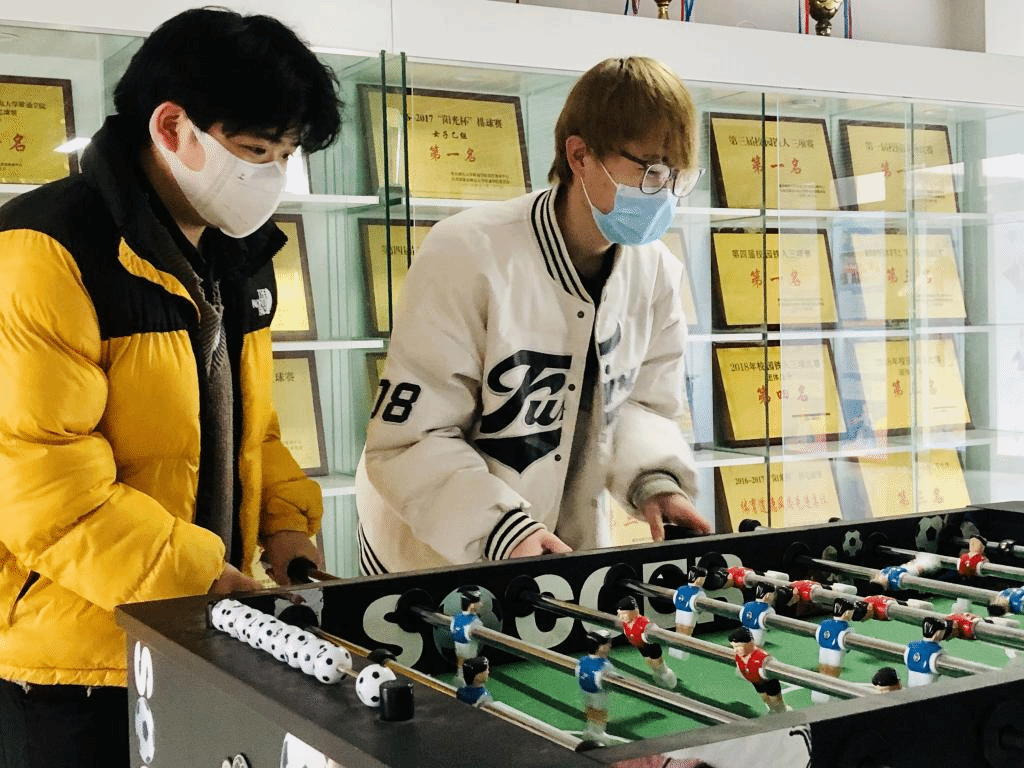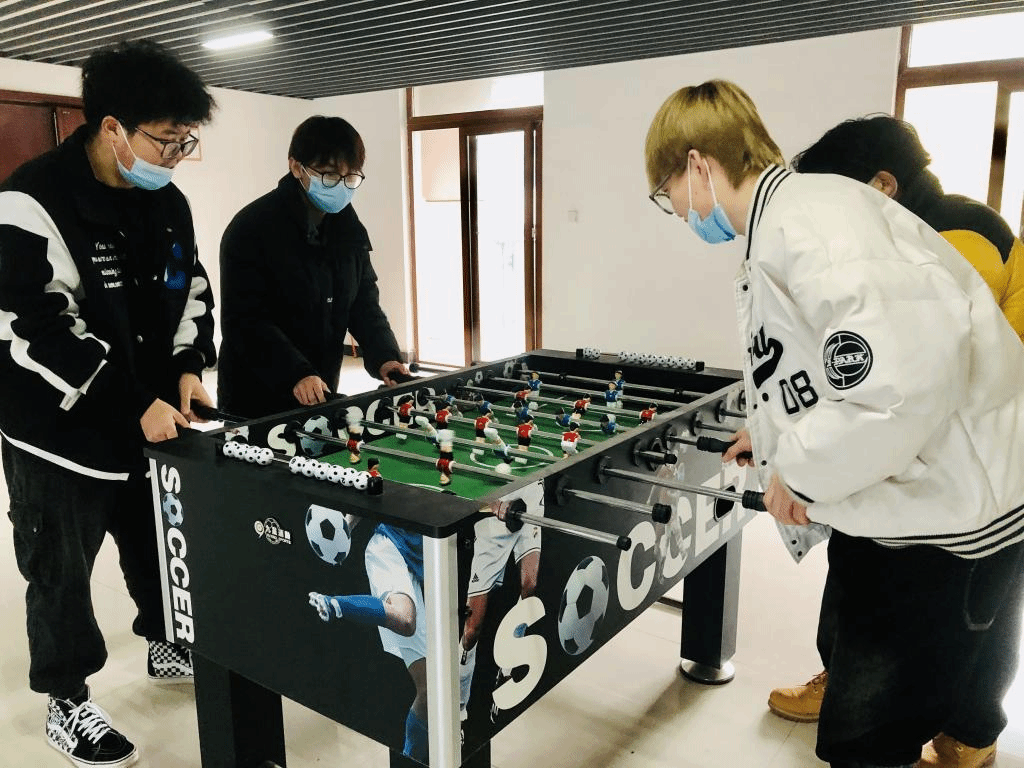 校园疫情防控取得阶段性胜利的同时,在不聚集、错峰出行的要求下,为让同学们深入感受足球魅力,智能工程学院联合行者书院,在梅若书院体育活动室举办“桌式足球体验活动”。桌式足球是足球赛的缩影,参赛成员通过操纵杆对固定球员进行左右方位移动,以此达到进攻与防守。与足球一样,这项运动是团队赛,需要队员的配合与战术指导,对参赛者的手、眼、脑协调能力要求较高。通过桌式足球体验足球竞技魅力,让世界杯不止在观赛。