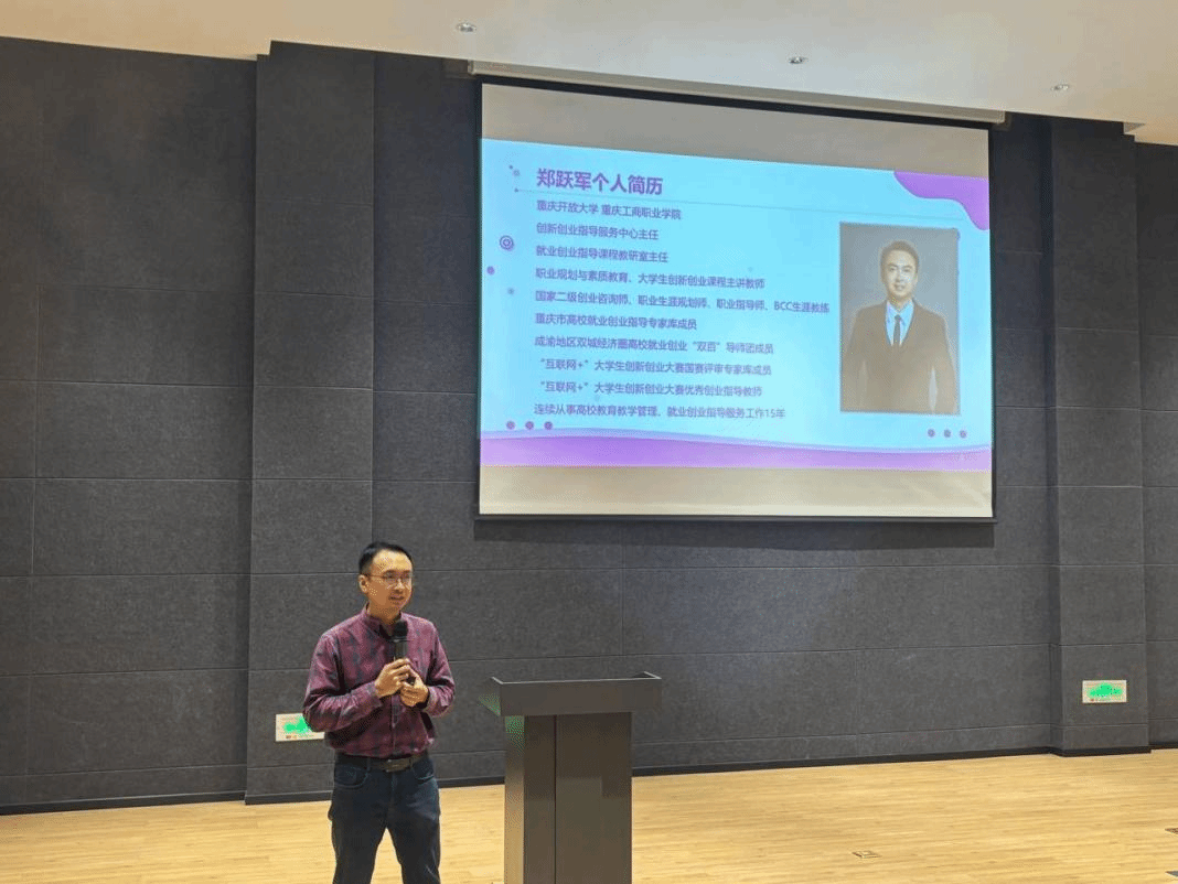 为帮助同学们认识当前严峻的就业形势,转变就业思路与观念,深化求职素养,更好地迎接就业挑战。数字经济与信息管理学院于10月17日19时在六度空间•105度学术报告厅举行了“转变就业观念 提高就业能力”——职言职语系列讲座第109期。本次讲座有幸邀请到了重庆开放大学、重庆工商职业学院创新创业指导服务中心主任,就业创业指导课程教研室主任郑跃军老师作为主讲嘉宾,对“转变就业观念,提高就业能力”主题进行培训讲解与探讨。