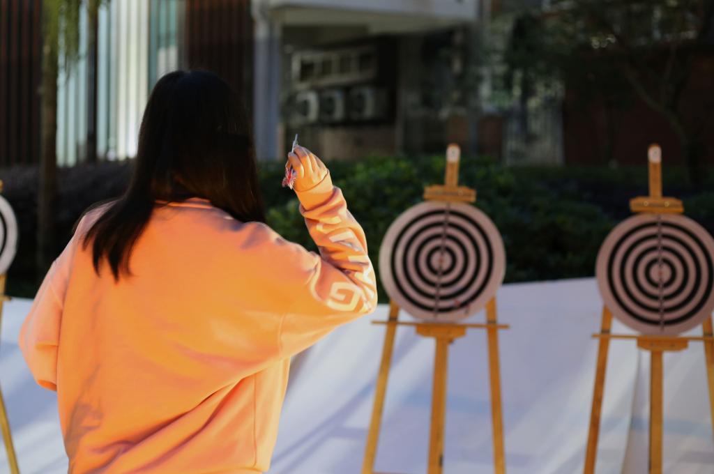 游戏寻食记,三两好友结伴而行,走近游戏区,趣味挑战层出不穷。“你划我猜”默契大考验;“答非所问”考验大家反应力;飞镖大作战也排起了长龙......