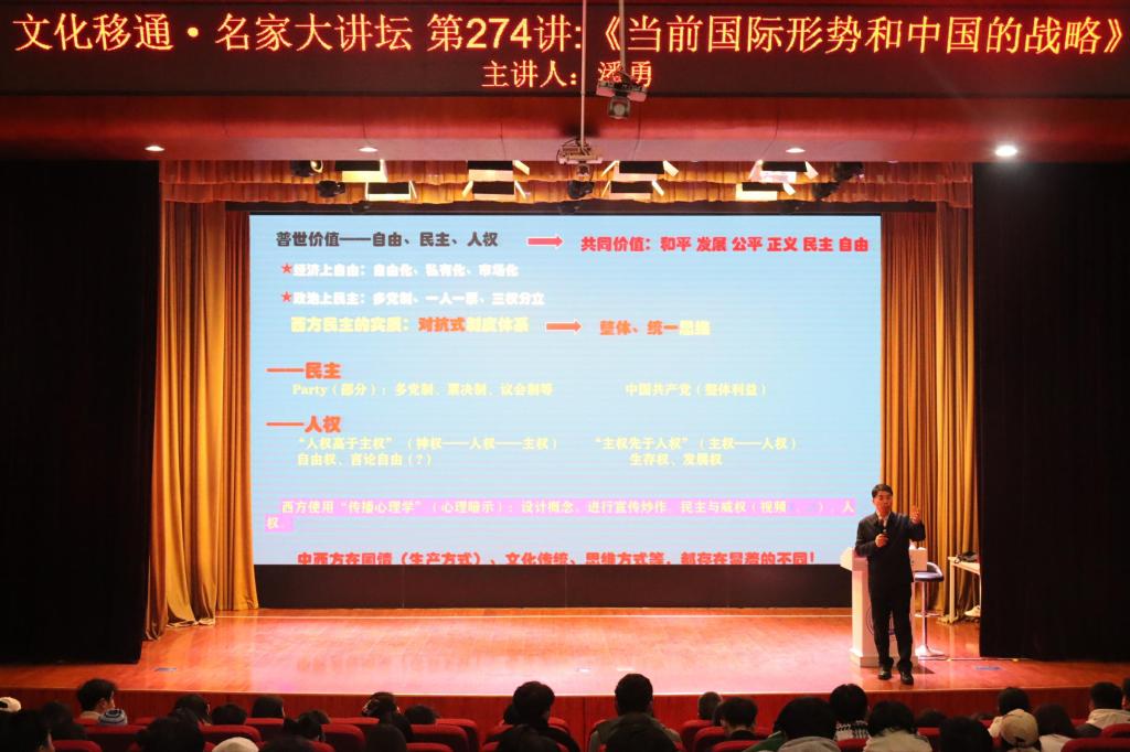 3月1日19:00重庆市社科联副主席、重庆工商大学兼职教授潘勇在下里巴人剧场为同学们带来《百年大变局与中国的战略选择》的讲座,带领移通学子了解当前国际形势和中国应该如何塑造战略机遇,实现自身发展,对于当代大学生开拓视野、激发爱国热情具有重要意义。
