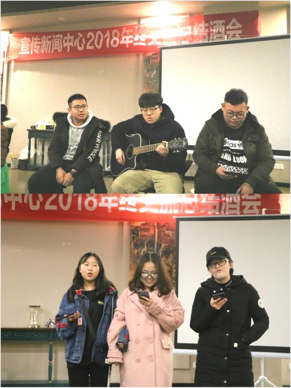 颁奖环节后,各支学生队伍争相踊跃地表演才艺节目,展现出学生记者的独特风采。大学生记者团带来一首自弹自唱的民谣小调,动人的歌词,优美的旋律,温柔深情的歌声,三个大男孩用独特而温情的方式告白:“你在远方的山上春风十里。”校园通讯站的节目是女生合唱,与记者团男生低沉、温情的唱腔不同,她们细腻甜美的歌声令人沉醉其中。青春小栈的同学带来了一段男女组合的说唱,节奏感十足,男生的酷与女生的帅气引起了现场的阵阵欢呼,充分显现出了大学生独有的朝气与魅力。