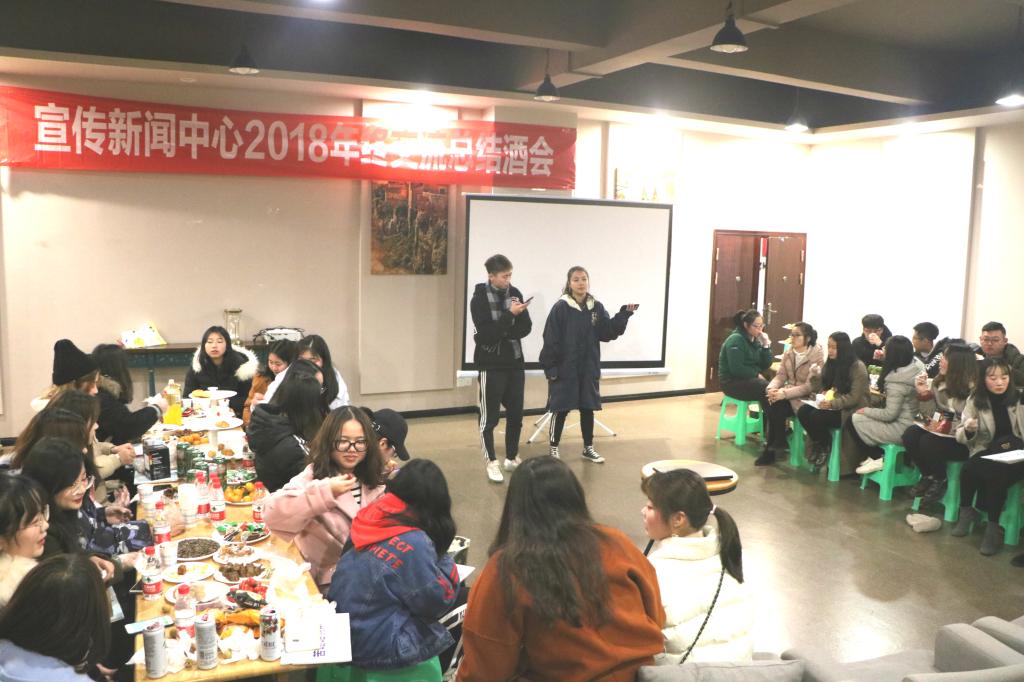 12月21日晚7点,由宣传新闻中心筹划主办的大学生记者团、校园通讯站、青春小栈2018年终交流总结酒会在行政楼C栋咖啡厅举行。宣传新闻中心唐梦老师、粟思寒老师,宣传新闻中心全体学生助理,以及三支学生队伍齐聚咖啡厅,共话校园新闻宣传工作。大学生记者团干事冯好主持酒会。