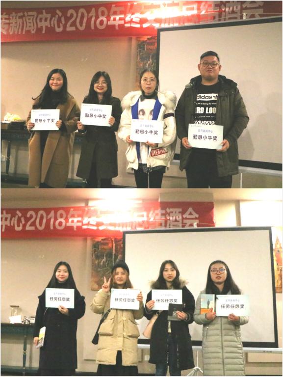 酒会开始,唐老师对学生助理和三支学生队伍表示感谢,简要回顾和总结了本学期宣传新闻中心内宣、外宣、新媒体工作,并对其中涌现出来的学生干部干事进行表扬和颁发奖品。经过前期自主申报奖项、统计任务表、老师打分,朱润钰、古敏、周子睿、袁丽娜等28名同学分获宣传新闻中心“最佳新人剪辑奖”、“妙笔生花奖”、“积极上进个人奖”、“新媒体创意奖”、“勤恳小牛奖”、“才华爆表摄影奖”、“任劳任怨奖”、“苦哈哈熬夜奖”。