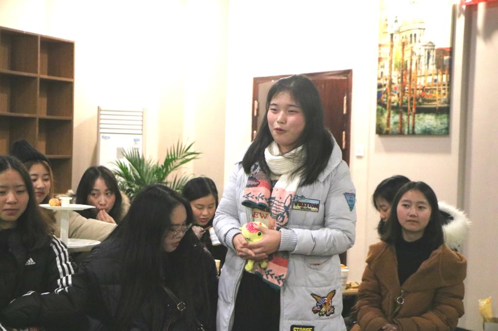 活动以游戏为引,借趣味十足的方式鼓励学生进行交流与总结,展示自我、分享成长经历。在“击鼓传花”的游戏中,校园通讯站干事黄璐瑶上台分享:“我进入宣传新闻中心校园通讯站快一个学期了,我学会了各种技能,比如‘办公三件套’、PS、PR等等,并且在人际交往能力和时间管理方面有了显著提升,我非常感谢我的部长对我悉心的培养,也十分感谢老师对我的关爱。”另一位被游戏“选中”的同学则是选择表演一段互动说唱来谈自己的心得感想,她与搭档默契十足,令现场的氛围更加轻松活跃。