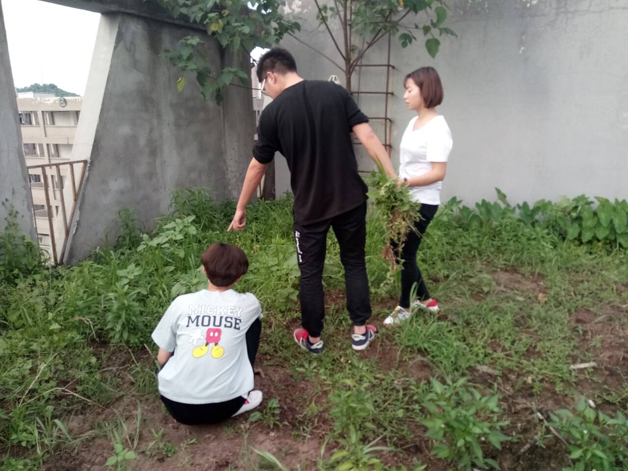 面对大自然的小生物的胆怯,有时劳动结束后我会经常抓一只蟋蟀或是蚱蜢跟队员开玩笑,久而久之,她们便不再胆怯这些大自然的精灵。面对厚重的土地与笨重的锄头,我会去咨询外面的一些农民伯伯或者是自己的爷爷那一辈他们的经验,将如何握锄头,如何操作更加省力,效率更好。渐渐地队员们掌握了方法,也不再那么艰难。