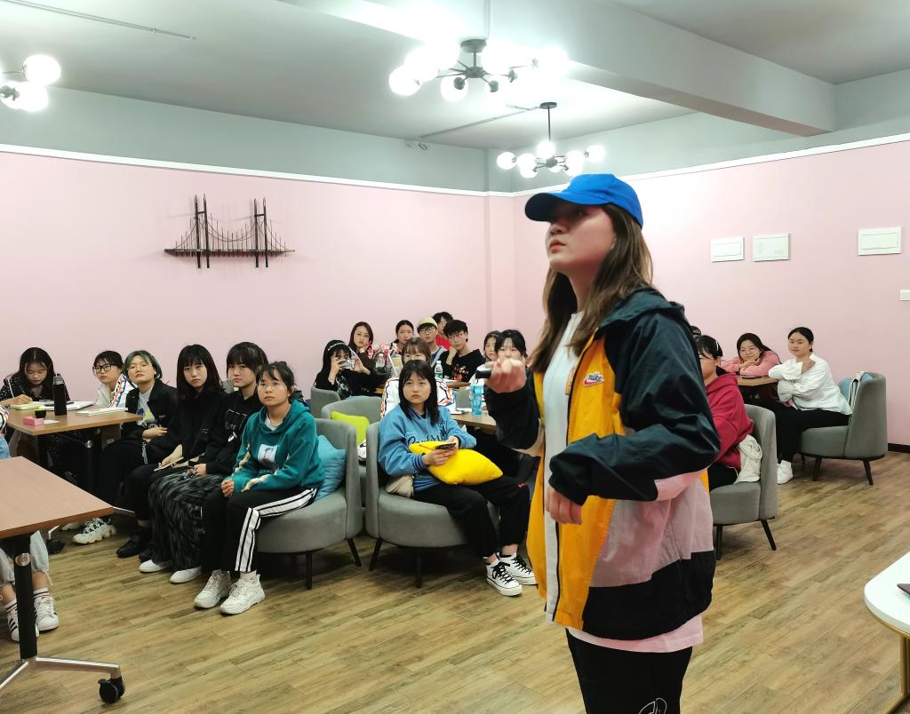 晚上7点,大家相约爱莲,随心而坐。王尚傲老师首先向大家讲述了排舞的由来和发展史,她提到:“排舞属于全球化健身运动类别的一个分支,与其它舞蹈不同,排舞是将舞蹈与运动有机结合的一种强身健体的方式。”紧接着,王尚傲老师采用边演示边讲解的方式,向大家介绍了排舞运动的分类,拓宽了学子们的视野,让学子们感受到排舞不仅仅是简单的跳舞,排舞运动也有很多种呈现方式。随后,老师抛出一个问题——《牧马人》是属于排舞的哪一类,大家众说纷纭,有的说是古巴类,有的觉得是东海岸摇摆一类,各有各的想法。但在王尚傲老师的讲解下,谜团也逐渐解开。