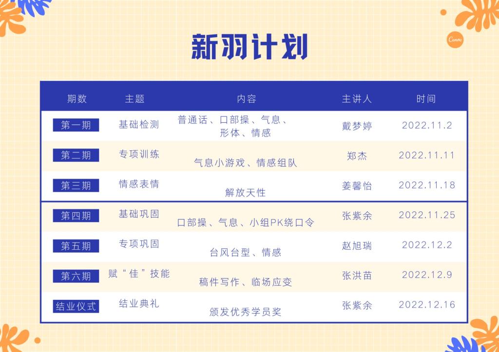 主持社自2013年创建以来始终活跃于学生社团管理中心各大活动之中,曾为社团招新、名模记、灯塔开班等输送主持人才,共计社员接近300余人,为社团各类活动主持活动200余场。主持社秉持着培养社员兴趣爱好以及培养一批能够初步适应主持舞台的主持人的理念,于2022年11月2日星期三晚19.00开展了主持人训练营第一次培训活动。本次活动培训主要以普通话基本功练习为主题,共计20人参与了本次培训。