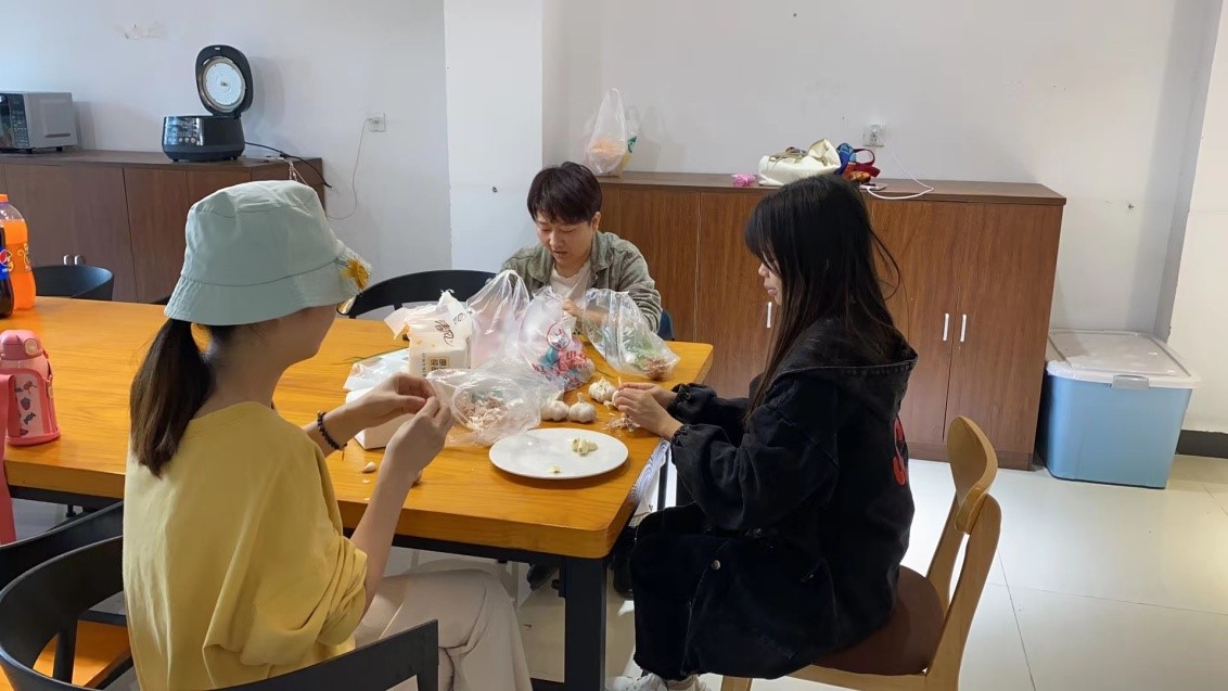 本次活动由异科导师张清蓉老师策划,共膳活动从原材料购买到整个菜品的制作都由数字媒体技术专业的学生自主完成。在张清蓉老师的带领下,同学们来到厨房共聚一堂,品尝着美味的零食;同学们一一分享了自己近期的就业心态、就业志愿和就业计划。张清蓉老师和同学们边做饭边讨论着最近的学习生活状况,畅所欲言,乐在其中,师生间得到了更紧密的沟通。随后,张清蓉老师为大家分享就业经验,分享了自己硕士毕业后的工作心得及面试技巧,让同学们感受到了象牙塔之外工作与生活的惊喜与挑战。