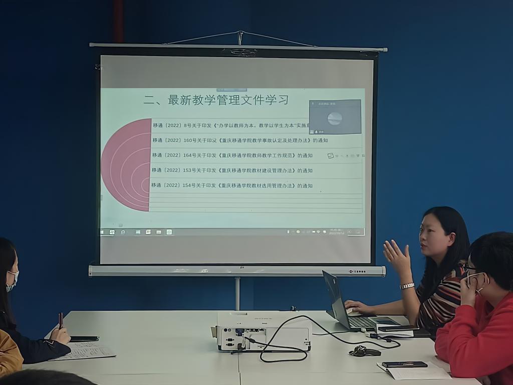 师德,是教师工作的精髓,“师爱为魂,学高为师,身正为范”是其内涵。为了让老师们更好地明白本职工作以及其真正做到以学生为本的育人理念,数字经济与信息管理学院于10月12日下午4点召开教学规范与师德师风培训会议。此次会议由院长潘显兵主持,教学副院长刘贵容主讲,全体专任教师参与。会议线上线下同步举行,綦江校区线上参与,合川校区线下参与,线下会议地点选在学校刚新建落成的天空书院揽江厅,天空书院综合办主任李英杰老师热情接待,并简要介绍了书院定位与发展规划。