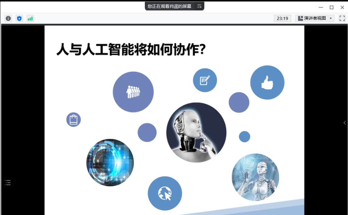 随后,肖遥老师分享了人和人工智能如何协作。伴随着人工智能的发展,最令人关注的就是人工智能大量取代人类工作之后,那些失去工作岗位的人将何去何从的问题。