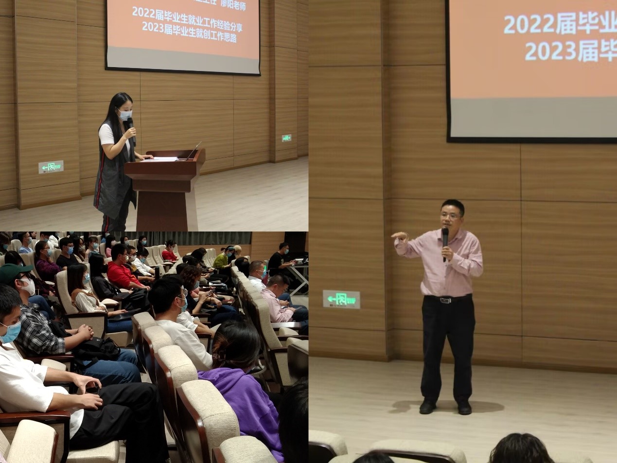 志高山峰矮,路从脚下伸。就创办公室主任张婷老师作为2023届毕业生就创工作汇报,汇报工作计划及工作感想,重点提出计划成立学院校友会、职业生涯工作室,以及如何将就业工作前置,建议专业老师将实习指导、毕业论文指导与就业指导相结合,助理毕业生就业,同时重点提出针对困难生帮扶的深度落实措施。学生工作办公室主任廖阳老师讲述毕业生在就业方面的困难与问题,并对毕业生提出了一些解决方案,有方向、有目标并为之奋斗终能俯瞰山峦群峰。