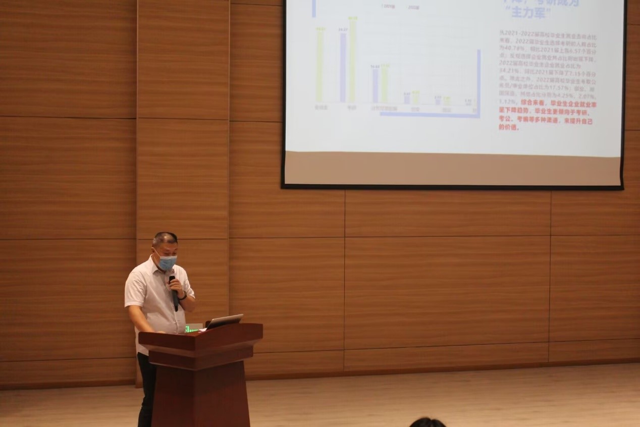 玉经磨琢多成器。潘显兵院长在本次会议上分析了当今毕业生就业形势。高校毕业生数量突破千万大关,呈高速增长,经济形势严峻,毕业生企业就业率下降,考研成为“主力军”,大多毕业生思想准备不充分,过分强调专业对口,希望一步到位,目标集中在经济发达地区的大城市,宁愿等待,也不愿到欠发达地区,到企业工作。潘院长指出毕业生应当树立正确的择业观念,切忌眼高手低,先就业再择业,积累工作经验,提升工作技能,适应多元化的就业市场。