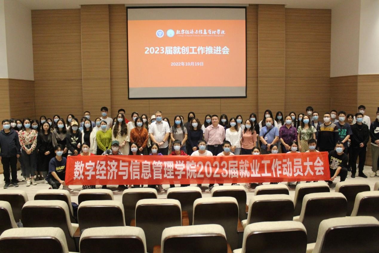 为切实做好2023届毕业生就创工作,充分调动、整合力量为毕业生提供更高质量更优质的就业创业指导与服务,数字经济与信息管理学院于10月9日14:00在创梦空间举办2023届就创工作推进会。学院院长、党总支书记潘显兵教授、学工副院长任瑞娟老师、教学副院长刘贵容教授、学生工作办公室主任廖阳老师、就创工作办公室主任张婷老师及全体教职工和部分学生代表出席此次活动。