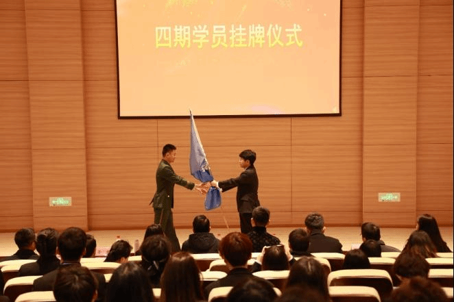 在班旗交接仪式上,第三期双创先锋班基地总经理罗张旭将象征双创精神的班旗郑重地交给第四期双创先锋班基地总经理朱政君手中。代表着双创先锋班精神的传承,也希望第四期学员能够在接下来的一学期中努力学习,勇攀高峰。随后朱政君作为第四期双创先锋班学员代表发言,表示第四期双创先锋班学员们将勇往直前,不畏艰难险阻,勇攀创新创业高峰。