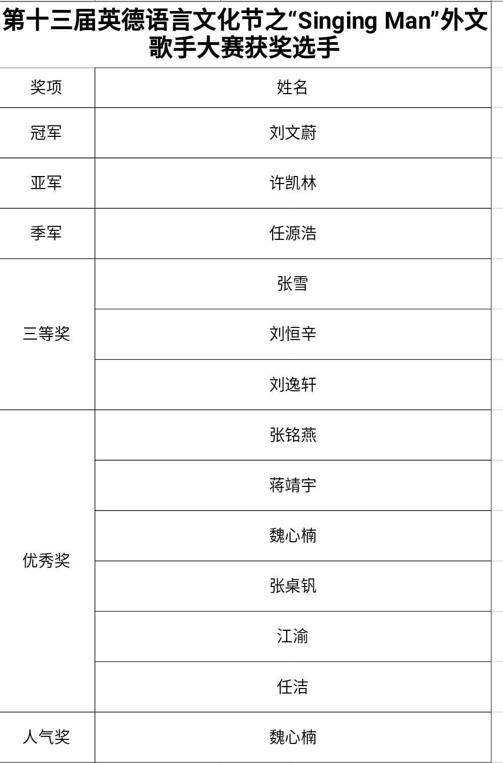 经过激烈角逐与层层评选,最终刘文蔚凭借宽广的音域、深厚的功底、极富张力、直达观众内心深处的歌声和强大自信的台风摘得桂冠!最终比赛结果如下: