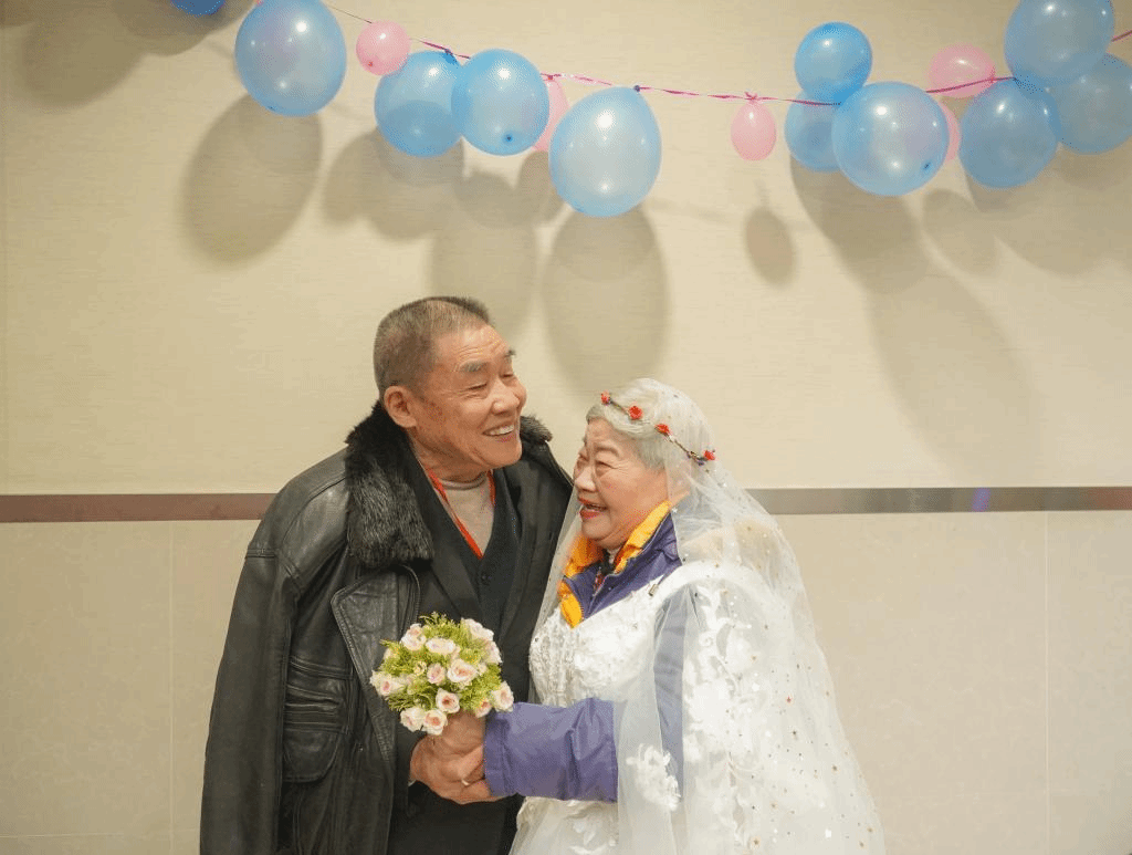 从前的日色变得慢,车,马,邮件都很慢,一生只够爱一人。2020年11月21日下午14点第十一期“青马工程”完骨中阶班02团支部与青年志愿者联合会“留光衣彩”关爱老人行动志愿服务专项支队的志愿者们一同来到了合川幸福养老公寓,为一对金婚夫妇拍下婚纱纪念照,见证了一生一代一双人的最美爱情。