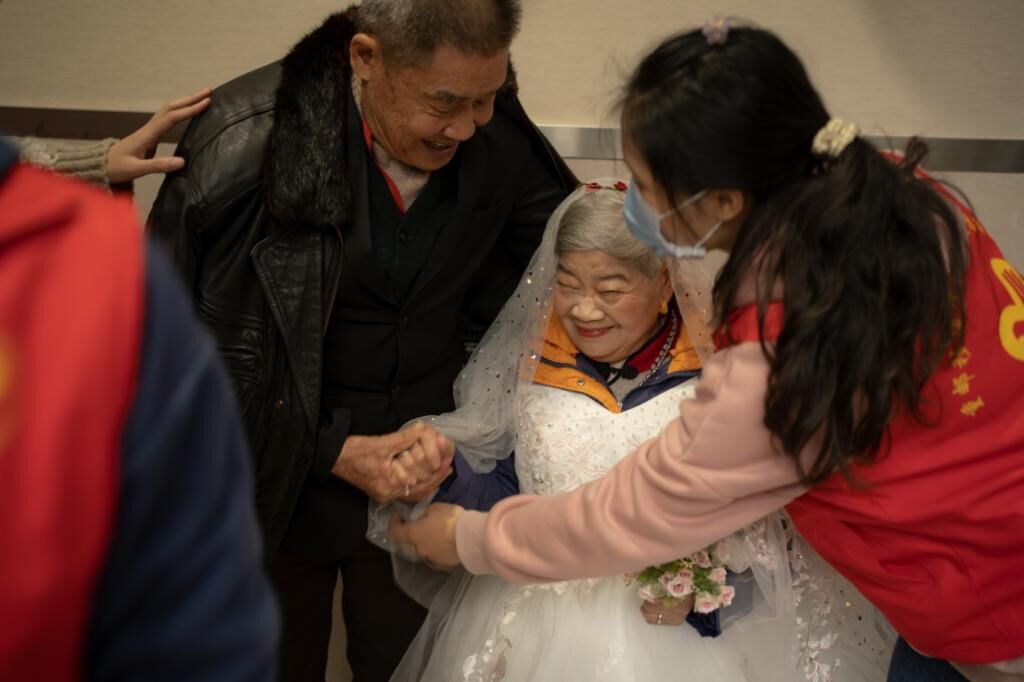 唐奶奶的腿脚不方便,志愿者们主动上前搀扶,却被一旁的爷爷拦下,他满眼爱意对着唐奶奶说:“我自己的老伴我自己扶。”这是爷爷的倔强,也是爷爷对唐奶奶的偏爱和宠溺。咔嚓一声,婚纱纪念照的定格也是“生死契阔,与子成说,执子之手,与子偕老”的真实写照。唐奶奶和爷爷从亭亭玉立,风流倜傥到苍颜白发,步履蹒跚,相濡以沫风霜岁月。尽管岁月的痕迹刻在两位老人嶙峋的身体上,但唯一不变的是双方挚爱的心。