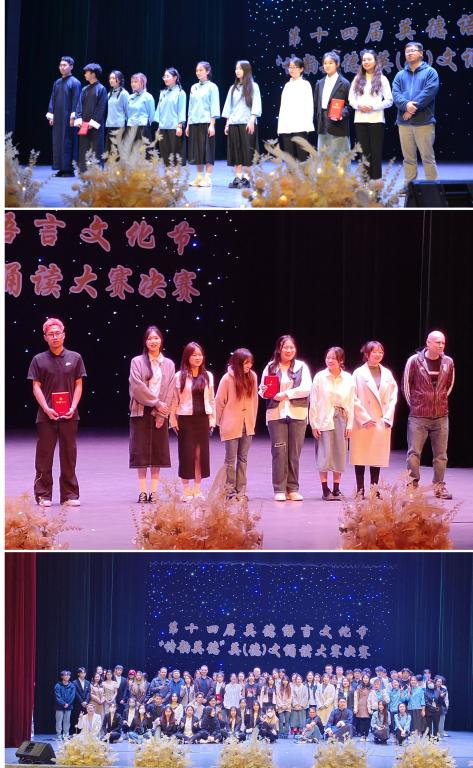 又是一年春暖花开季,由外国语学院举办的第十四届英德语言文化节“诗韵英德”英(德)文诵读大赛决赛在缤果大剧院圆满举行!此次诵读大赛为移通每一位热爱英德语言文学的学子提供展现自我才能的舞台,营造了良好的校园特色语言文化氛围,让更多的同学感受到了属于英德语言的魅力!到场评委有:钓鱼城科幻学院陈捷老师、外教Clive、外教Marvin、外教Julio、外国语学院张娅老师、郭唯焱老师、朱惠东老师、学生评委涂馨尹学姐、张汪翔学长。