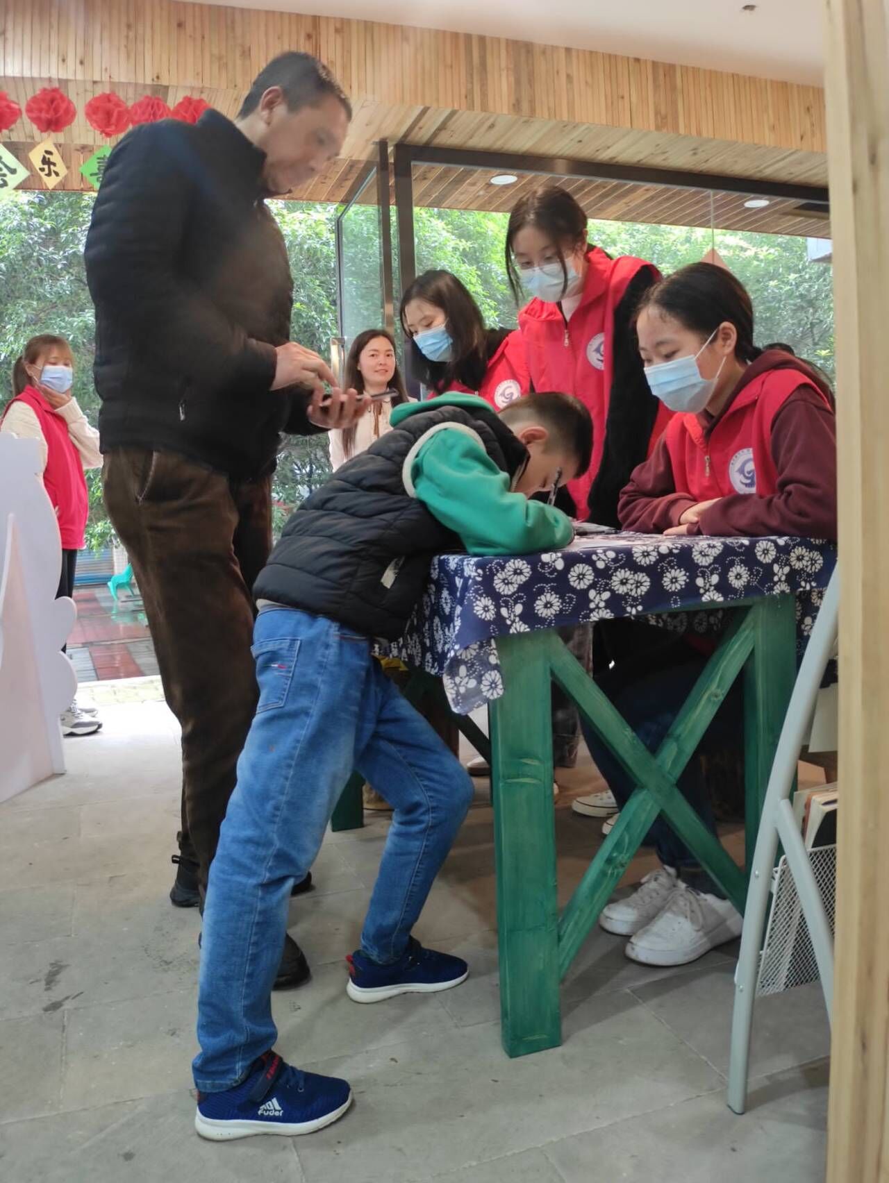 在这里很多孩子都是由家长陪伴前来的,有这样一个小男孩,因为不能融入被妈妈打了一巴掌,但他并未像其他孩子一样嚎啕大哭,尽管眼泪湿了眼眶,他也只是轻轻抹去,继续独自玩耍。在与孩子们一同学习、玩耍的这段时间里,志愿者们在学习拥抱星星,在努力帮助家长表达爱,让爱透过那道高墙,让星星真正“闪烁”。