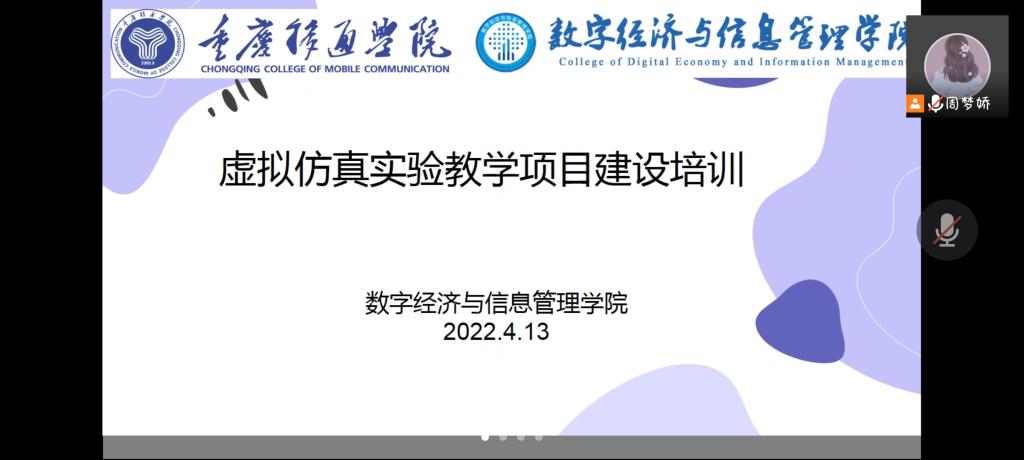 为推进数字经济与信息管理学院虚拟仿真实验教学项目建设工作,4月13日下午,由数信学院组织举办的虚拟仿真实验教学项目建设培训会在线上平台成功召开。会议邀请了虚拟仿真一流课程申报负责人雷志阳研究员讲解,由周梦娇老师主持,数信全体教师参加。