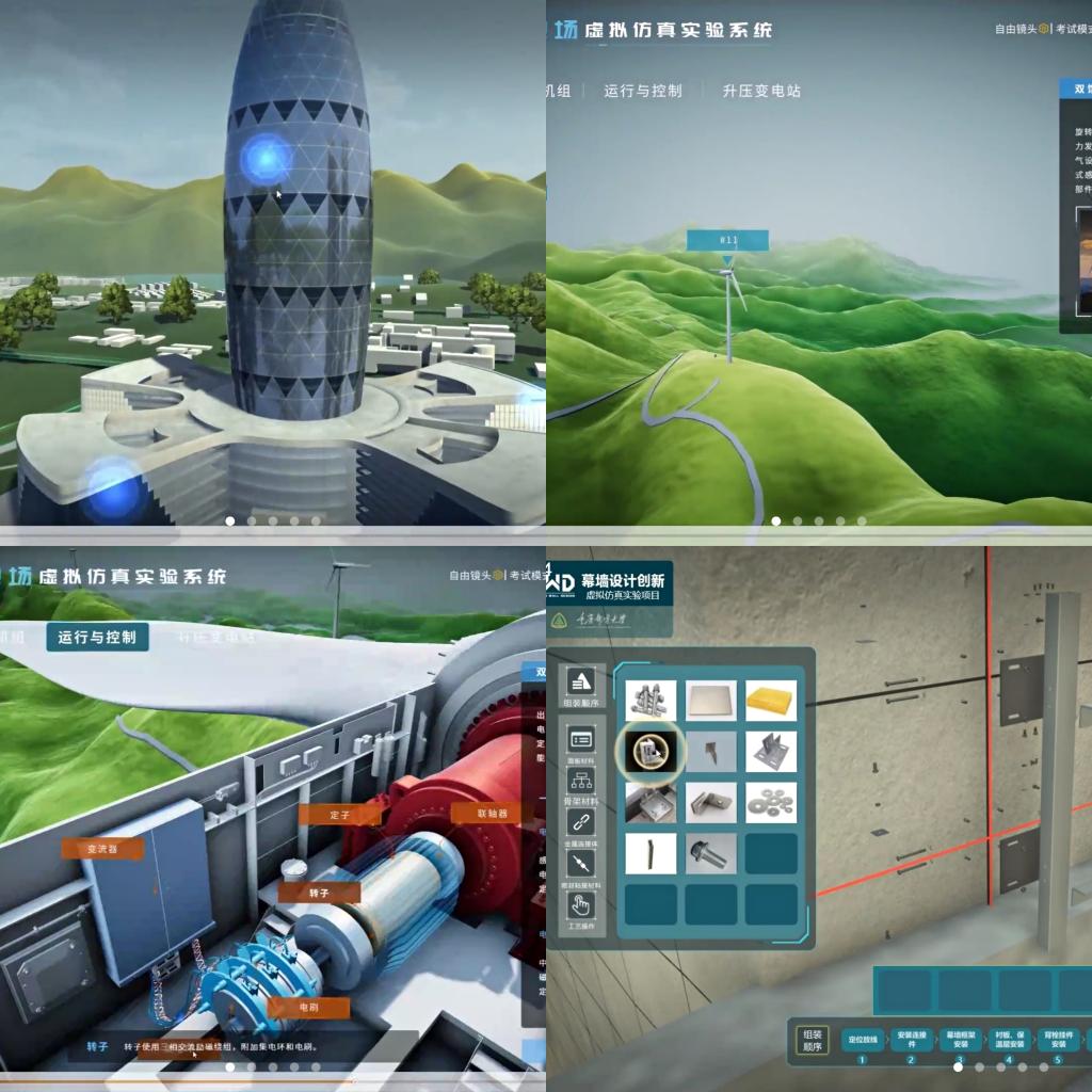 雷志阳研究员为了使与会老师更直接的了解虚拟仿真教学项目,给老师们展示了双馈风力发电厂与幕墙设计创新虚拟仿真实验项目。通过实物展示来分析这两个案例的目标、痛难点、优势、联合开发与多方位使用,由此来提出虚拟仿真训练资源建设的具体思路:找准目标、明确目的、整合资源、解决问题。