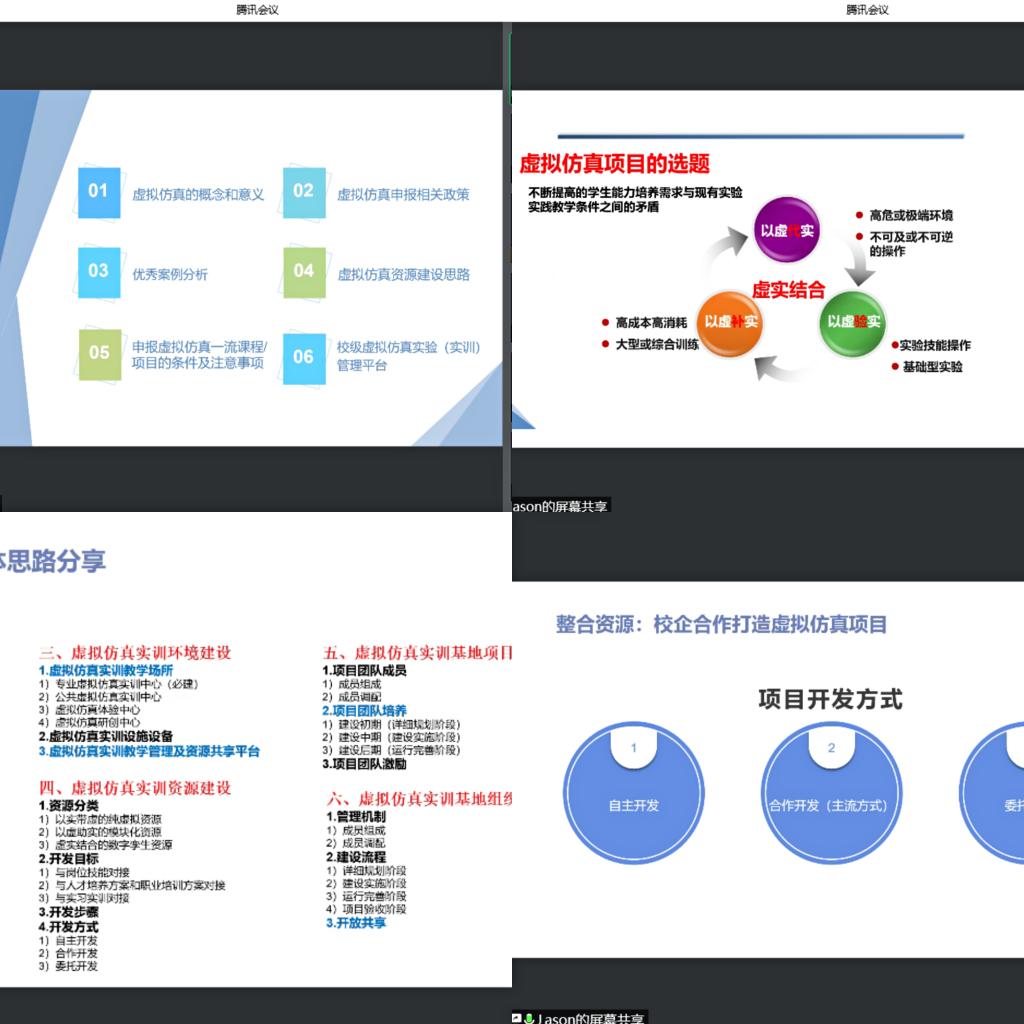 雷志阳研究员从六个方面进行讲解:虚拟仿真的概念和意义、虚拟仿真申报相关政策、优秀案例分析、虚拟仿真资源建设思路、条件与注意事项、校级管理平台。
