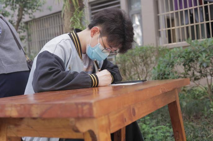 大赛时间为2022年3月30日至4月13日,本次初赛收到各个学院书画爱好者的参赛作品50余件。经过评审组的遴选,共计28位同学进入决赛并于4月13日下午14点在爱莲书院草坪举行现场创作。选手们整装待发,在热切期盼中,一双双认真的眼睛紧紧跟随着自己的笔尖与写出的字,在飘扬着舒服的翰墨气息下,处处都彰显着融洽的氛围。
