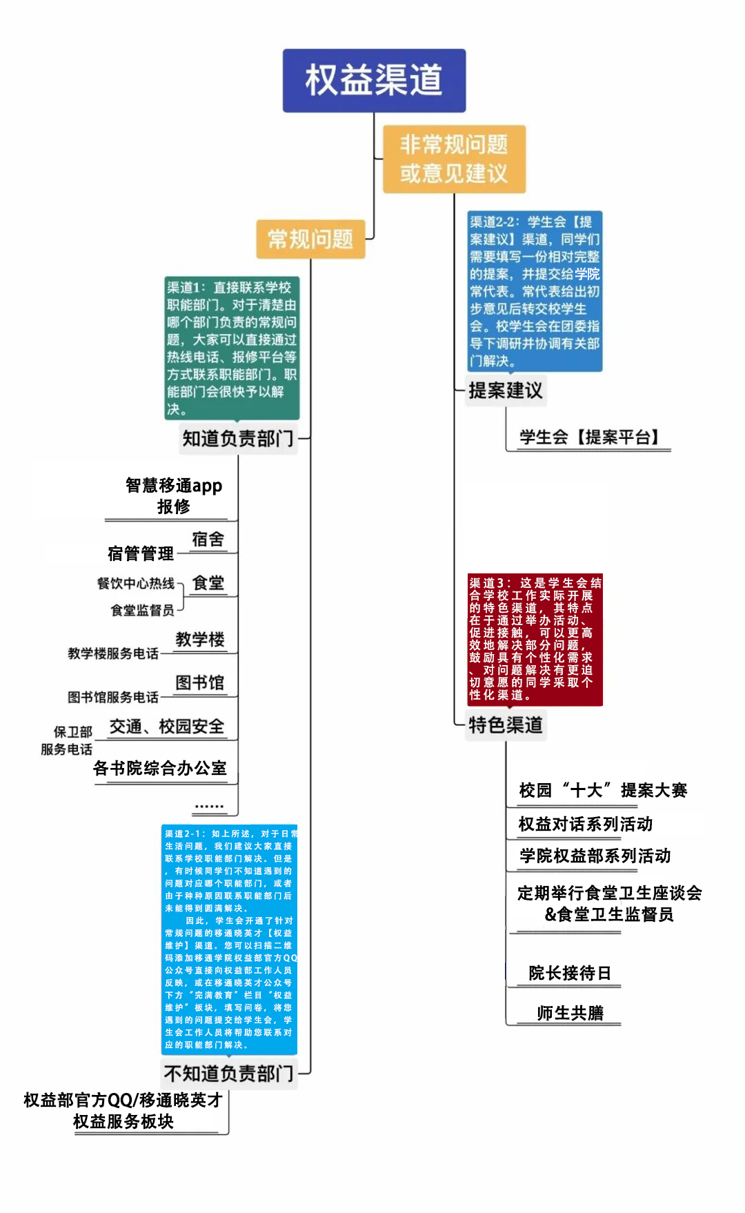 ————如果对于常规问题,不知道联系哪些职能部门或联系未果;或对于非常规的问题、意见建议等,可以通过学生会常态化权益渠道提出。