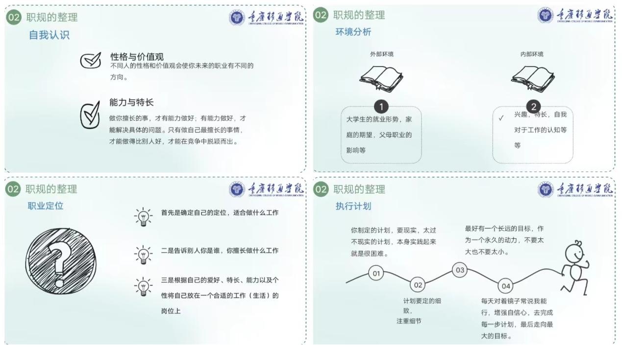 凡事预则立,不预则废。职业规划的重要性,无论多强调都不为过。汤世才老师通过自我认识,环境分析,职业定位,执行分析四个步骤来更加明确未来规划前景。在讲述过程中,汤世才老师提醒同学无论生活还是工作,我们的发展曲线也都不是一路直上的。职业规划是尽可能让它趋向于直线的唯一方式。计划是波动变化的,但是认真细致做下去的才是永恒不变,希望每一位同学能够脚踏实地,踏实达成每一步计划,完成最后远大的目标。