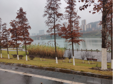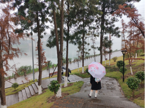 虽然下着小雨,但却丝毫不影响同学们出游的心情,相反这一场小雨更加重了公园的意境美,从远处望去似乎就像古代大家所画的泼墨山水画,虽然只有黑白二色,但是却尽显飘逸、灵动之感,走在其间仿佛在与古人同游,交流心中所想,尽得山水之乐。吹着捎带水气得寒风,看着已经发黄得枯草和已经凋零得花朵,虽然给人秋风萧瑟得感觉,但同时也会让人感到静谧,使人安静下来思考,回味过去所发生得事情,找到过程中的得失,以及对未来的规划。