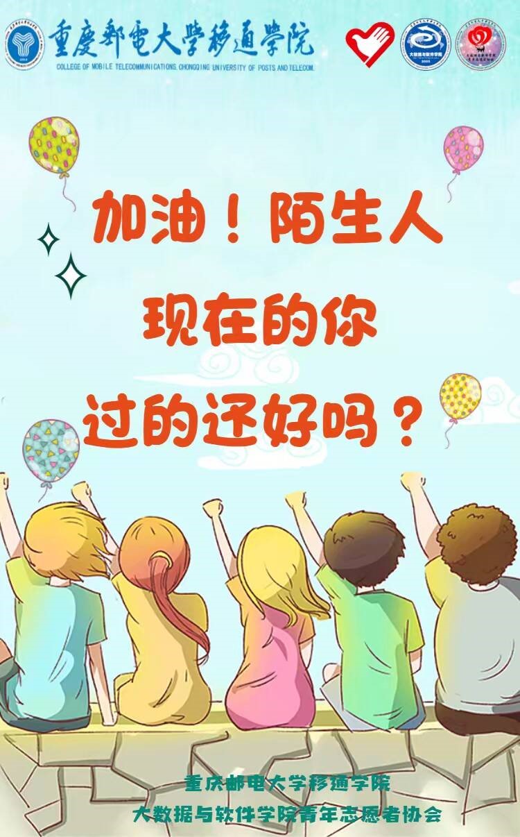 在这段非常时期里,每个人都忧心惶惶,看不见摸不着的病毒、早已规划却被耽搁的开学计划、心心念念却不能相见的人儿都让这段日子变得漫长而无望,可是由重庆邮电大学移通学院大数据与软件学院青年志愿者协会主办的“你好,陌生人——暖心排忧计划”活动就如同初升的太阳,带来了美好与希望,在这段日子里,指引着有困惑的移通学子找寻方向,探索希望。