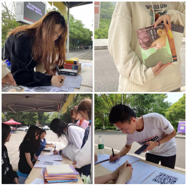 让书本在公益之中传递,让梦想在爱心之中发芽。活动开展引来同学们的广泛关注,不少同学前来询问“这个活动是在做什么?”、“我们都可以捐赠什么书?”等等关于活动的问题,志愿者们也一一耐心回答,并鼓励同学们积极捐赠书籍,为边远山区的孩子助力。短时间内就得到了同学们的积极响应,他们纷纷捐出自己喜欢的课外读物。这些书籍中,有的是内容丰富的科普读物,有的是建立正确价值观的的文学名著,有的是充满童趣的童话绘本,种类繁多,涉及到了各类知识。