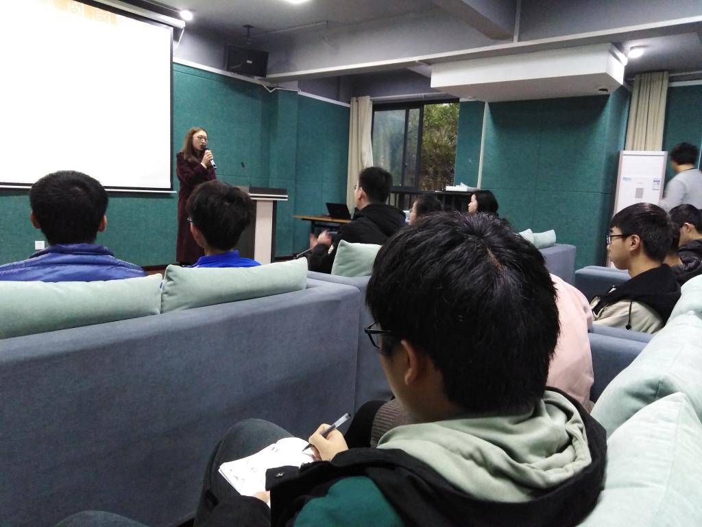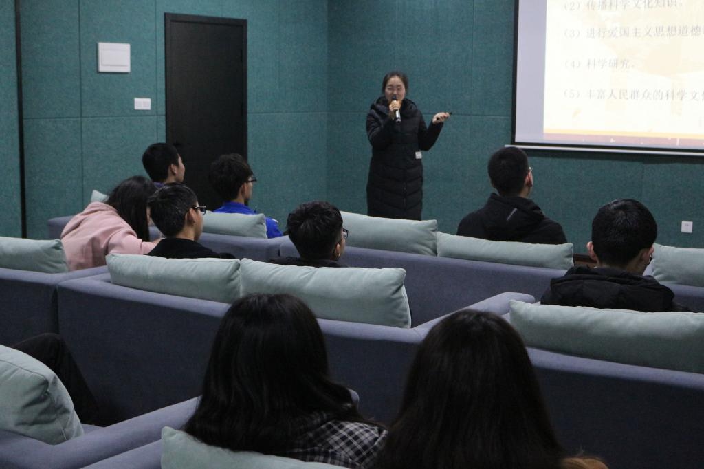 “什么是博物馆?”陈巧蓉老师以此问题为引。在同学回答“某一段历史时间的珍藏,宣传这段历史的平台”后,陈巧蓉老师先后给同学们介绍了不同机构对博物馆的定义。然后从“博物馆概论”“高校博物馆”“钓鱼城历史陈列简介”“钓鱼城历史陈列反思”四个模块展开详细讲解。陈老师通过提问互动方式,使在座同学参与其中,现场气氛非常活跃。