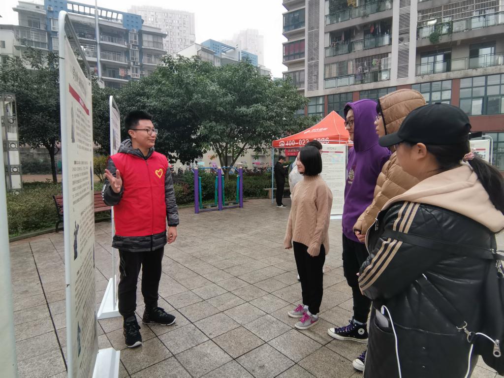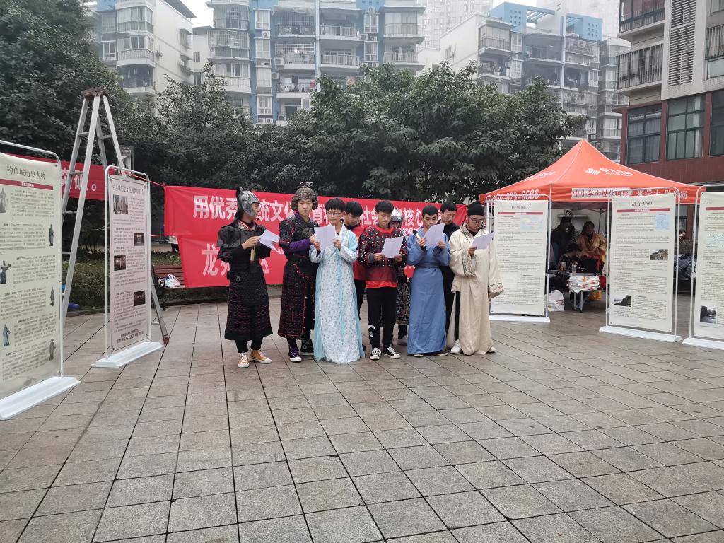 表演结束后,为了让人们能够更多的了解钓鱼城历史文化,钓鱼城研究会的同学放置了关于钓鱼城历史文化的展板,在展板前同学们认真地为观众讲解,仔细地回答观众们的疑问。