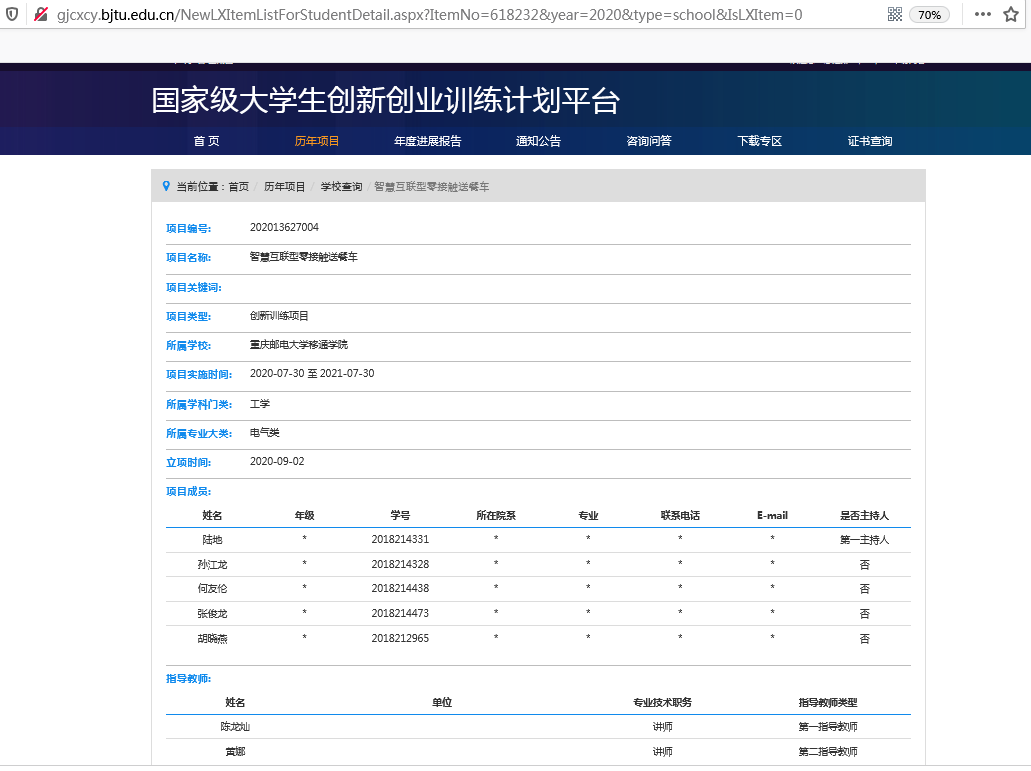 我校一直重视加强大学生创新创业教育,强化创新创业能力训练,培育适应社会发展需要的创新型人才。根据《教育部高等教育司关于报送2020年国家级大学生创新创业训练计划立项项目的通知》(教高司函〔2020〕4号)和《重庆市教育委员会关于做好2020年大学生创新创业训练计划项目报送工作的通知》(渝教高函〔2020〕6号)文件要求,我校积极开展大学生创新创业训练计划项目的申报工作,秉着“公平、公正、公开”的原则,经过评审组的综合评定,择优推荐《智慧互联型零接触送餐车》、《单多多餐饮运营》2个项目为国家级项目,《“合家”——同城到家数字化生活服务》等18个项目为重庆市级项目上报市教委,最终全部获得立项。