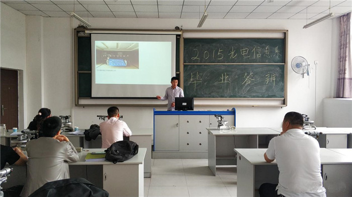 5月30日下午,光电信息系2015级毕业答辩会及毕业座谈会在第一实验楼1305教室举行。参加此次会议的有潘显兵主任、曾国庆老师、崔海生老师、张媛老师、光电信息系的全体同学。
