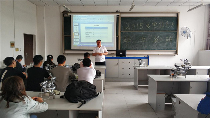 最后,光电信息系潘显兵主任总结发言:“2014级,2015级光电信息系均保持了高质量的就业,两届学生就业率100%;两届学生共有13位同学拥有1项以上国家专利,学生专利持有率65%;2015级学生国家奖学金获得率30%,获得各类创新创业比赛近20余项,人均2项以上;实习实践企业包括:长虹公司、南京第一光电、美菱公司、腾中重工、翰博光电等10余家。”潘主任希望毕业生在步入社会后踏实工作、继续学习、努力取得更高的成绩!
