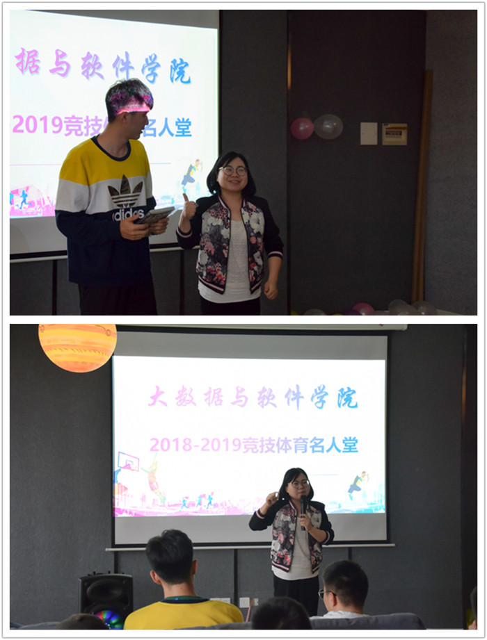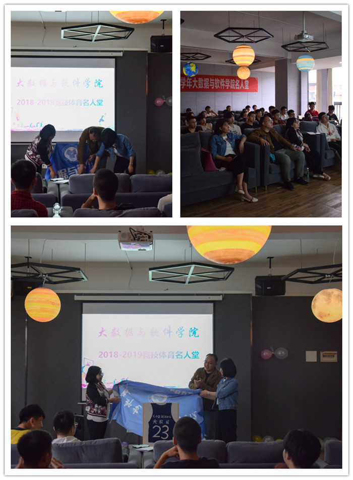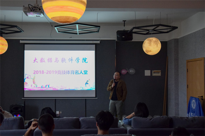 又是一年清风起,又是一年离别季。告别了几日绵绵细雨,迎来了渐渐放晴的一天,也迎来了一场青春与篮球的告别。谁的青春没有一场与运动有关的故事,谁的青春没有一段关于热血与拼搏的传说,谁的青春没有一段兄弟与情谊的不舍,谁的青春又能没有尽头。这个初夏,大四的学子们就将结束他们的大学生活,走向社会,于是,为了表彰大四学子在这四年来对大数据与软件学院竞技体育工作的突出贡献,也进一步加深大四同学与学院之间的情感,加强同学们之间的联系,激发大数据学子对竞技体育的热情,大数据与软件学院体育协会举办竞技体育名人堂对这四年来在院系各运动队当中的突出人物进行退役表彰,为毕业生的完满竞技体育之路画上圆满的句号。莅临本次活动的嘉宾老师有:大数据与软件学院副院长毛敏老师,竞技体育版块指导老师马喆老师,2015级辅导员任瑞娟老师。