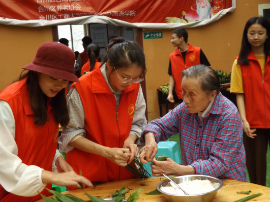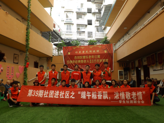 尊老、敬老、爱老、助老是中华民族的传统美德,在一年一度的端午佳节来临之际,为了让孤寡老人度过一个温馨祥和的端午节,学生社团联合会及各学生社团前往合川区康乐敬老院看望老人开展“端午粽飘香,浓浓敬老情”活动。