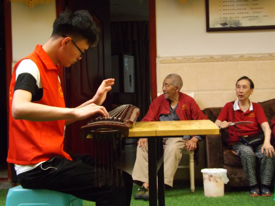 其中,古琴社和流行音乐社的社员们为老人们精心准备演唱歌曲及古琴演奏,志愿者们精彩的表演让老人们高兴不已,纷纷想上台展示自己的声音。在融洽的氛围里整个敬老院充满欢声笑语,处处洋溢着温馨祥和的气氛。