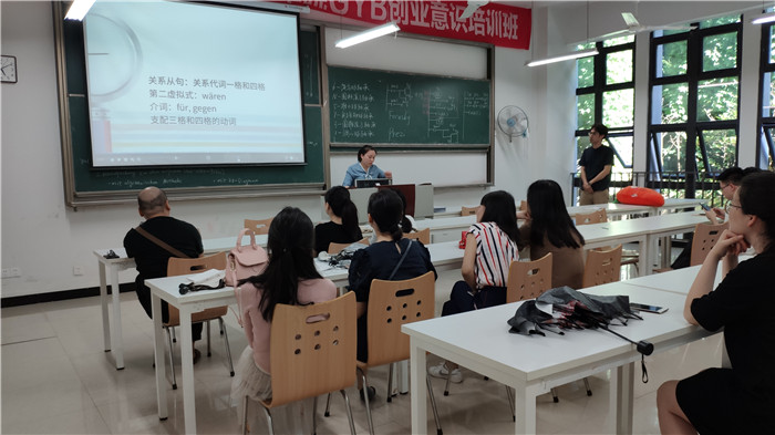 6月5日下午,中德学院德语教研室在6208教室举办了一场教师课件制作分享会,由前不久刚结束的“第三届移通学院德语教师课件制作大赛”的前三名优胜者:王琥、曹雪娇和蹇红老师带来他们在课件制作上的经验分享。本次会议由教研室主任张洋主持,学院全体德语教师参加。