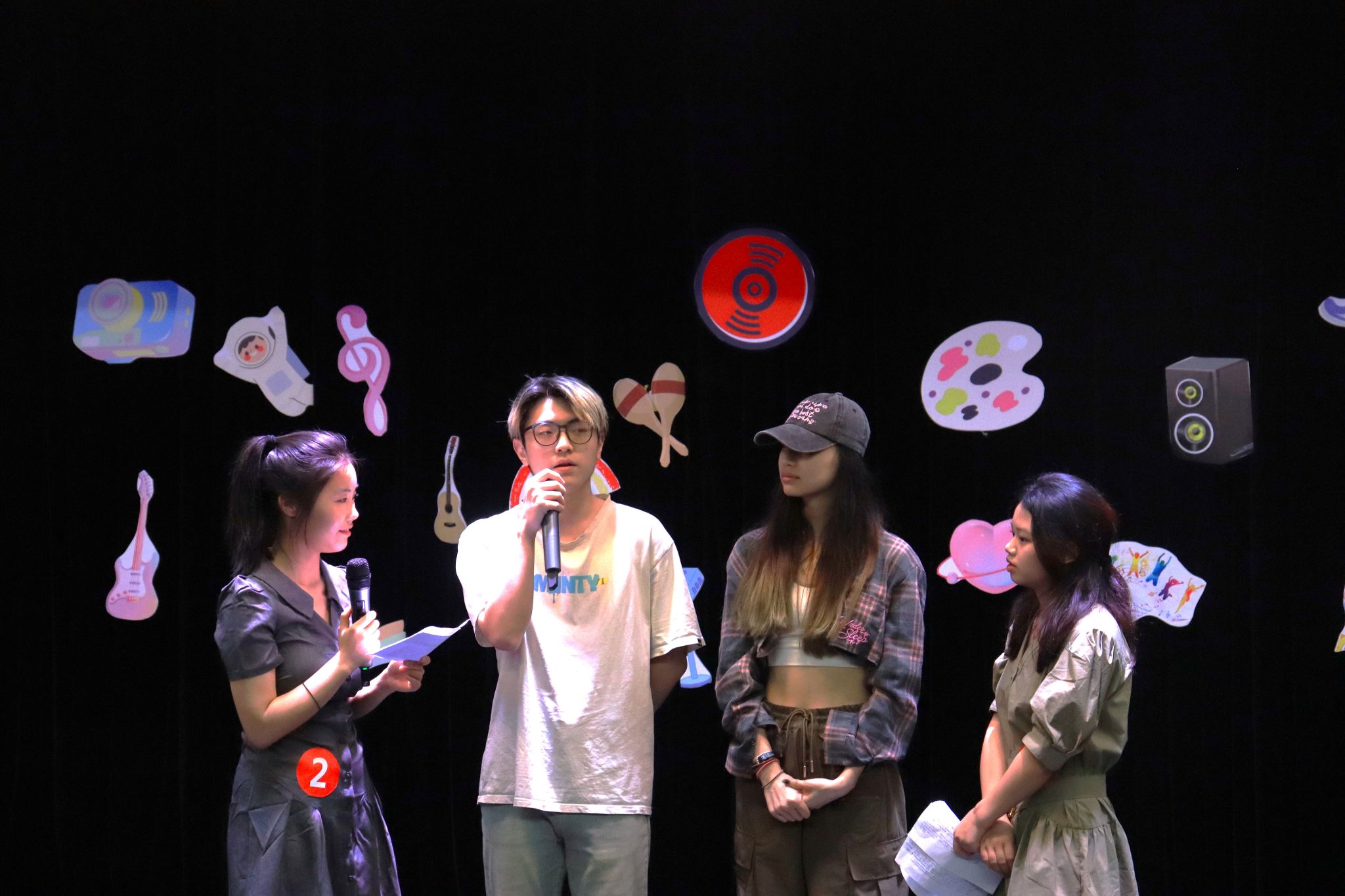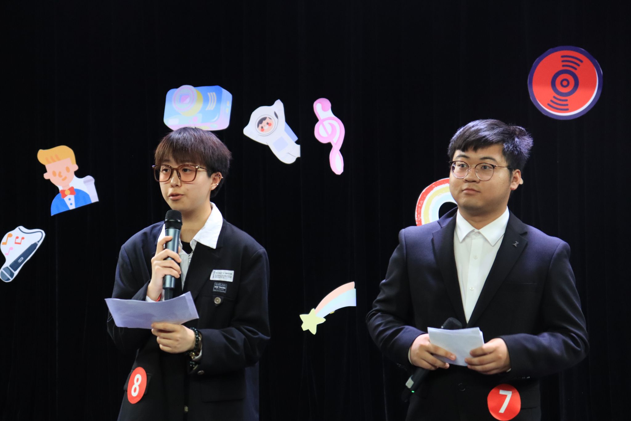 14时,决赛正式拉开序幕,开场舞精彩且热辣,瞬间引起了观众们观看的兴致。舞者退下,随着观众热烈的掌声,选手上场。在第一轮搭档主持的环节,选手们化身成真正的主持人,每位选手都拥有独属于自己的主持风格。他们绘声绘色,娓娓道来,他们自信、从容、风度翩翩,举手投足间台风尽显,展示了选手们深厚的主持功底。场下此起彼伏的掌声、欢呼声,为比赛的气氛升温。比赛中间邀请到学校说唱社的马润同学,用一首《aways》带来了一场听觉盛宴,缓和了比赛紧张的气氛。