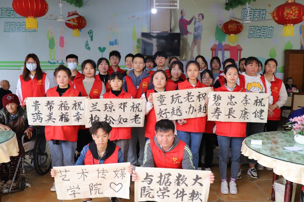 为弘扬中华民族爱老敬老的传统美德,2020年10月25日上午九点,我校艺术传媒学院青年志愿者协会和大数据与软件学院青年志愿者协会相约合川区老顽童颐养中心,开展“情暖重阳,温情小院”特别活动,培养学生感恩祖辈的情怀,养成敬重老人、关心老人的良好品质。此次的敬老院之行不仅培养了志愿者们感恩祖辈的情怀,养成敬老、爱老的良好品质,还为敬老院的老人们送去了心灵上的慰藉,使他们感受到来自社会的温暖,体会到爱与关怀。
