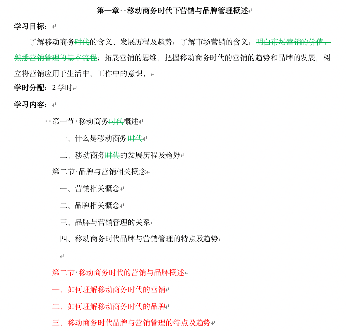 会上,范院长强调了全校商科课程进行教学大纲改革的首要性、重要性以及必要性,并以《移动商务时代的品牌与营销管理》这门课程的教学大纲改革为例,在原有大纲的基础上进行详细的批注和修改,主要突出“移动商务时代”大背景以及信息产业特色化。现场用修改后的第一章和第二章作为示例,讲解改革思路:第一章第一节首先让学生理解什么是移动商务,然后讲解移动商务的发展历程及趋势;第二节主要引导学生理解移动商务时代的营销与品牌概述;第二章第二节的营销宏观环境,也应该是移动商务时代企业面临的宏观环境分析,即在移动商务时代背景下主要从政治法律环境、数字经济环境、消费文化环境、数字技术环境4个方面的呈现。同时,范院长还现场将修改后的大纲与PPT课件结合,向老师们讲解用意和效果。只有贴合新的课程名称以及信息产业特色的课程大纲,才是全校商科真正需要的教学大纲。